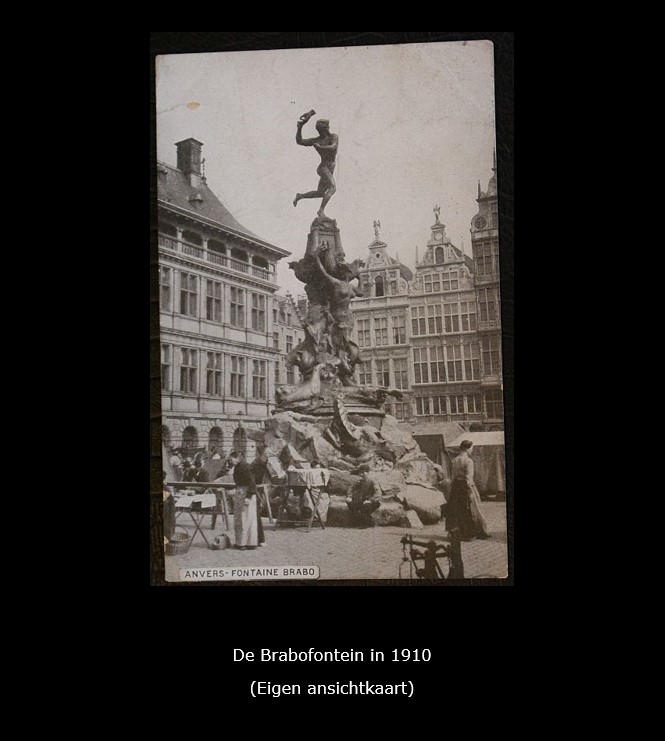 Vóór het stadhuis op de Grote Markt bevindt zich de bekende Brabofontein. Op deze fontein bevindt zich een bronzen standbeeld van Silvius Brabo daterend uit 1887. De sage van Brabo gaat over de reus Druon Antigoon, die de hand van onwillige tolbetalers afhakte en deze in de Schelde wierp. Brabo doodde echter de reus en hakte op zijn beurt diens eigen hand af, welke hij in de rivier gooide. Antwerpen zou volgens deze uitleg van Hand werpen komen.