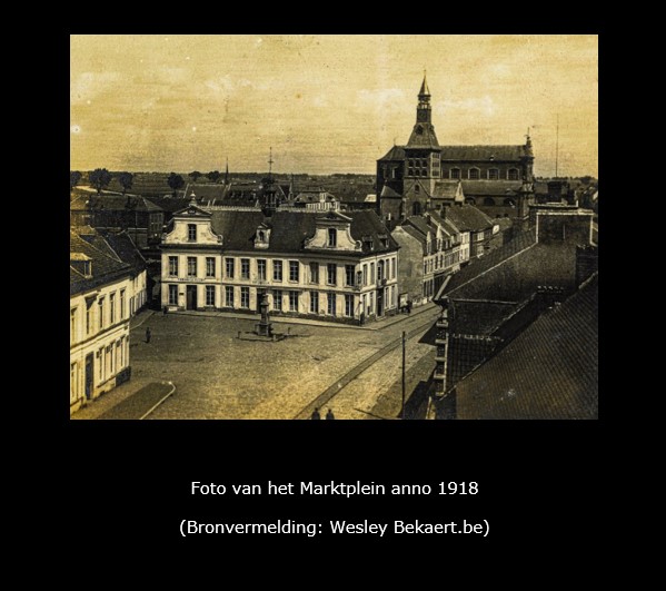 De ansichtkaart van 1918 toont de huizenrij aan de linkerkant die intussen werd afgebroken. Het uitzicht van het Marktplein is vooral in de jaren 1970 ingrijpend veranderd met de komst van appartementen.