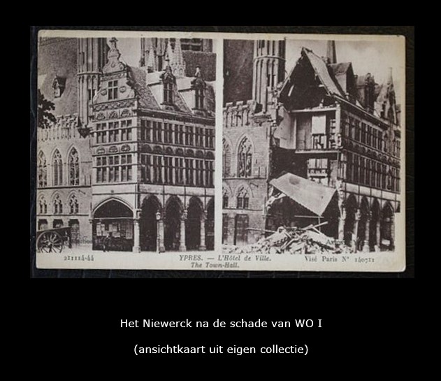 In de Eerste Wereldoorlog werd Ieper verwoest en ook de lakenhallen met het belfort en het Nieuwerck werden vernield.