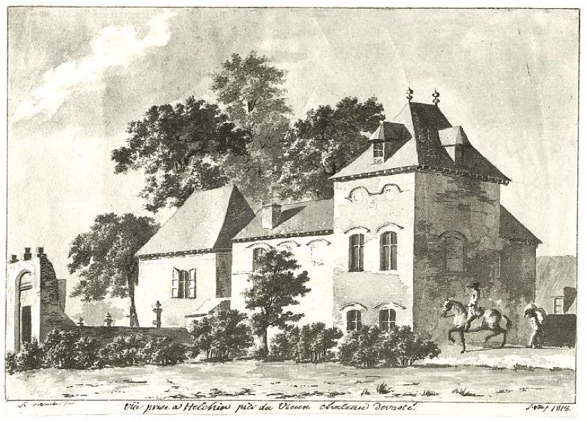 Séraphin Vermote schreef in 1813 als titel bij de tekening "Vue prise à Helchin près du Vieux chateau devasté". Hij