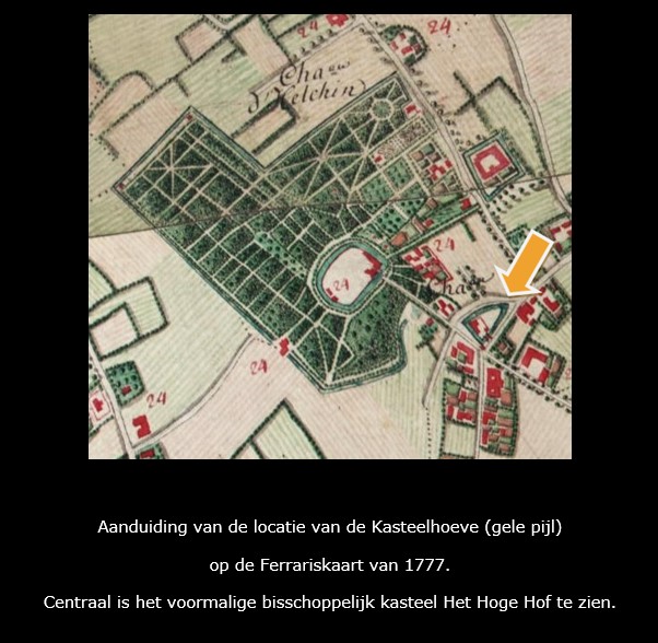 tekende trouwens in deze omgeving (op het einde van de huidige Kasteeldreef) de restanten die toen nog aanwezig waren van het voormalige bisschoppelijk kasteel Het Hoge Hof.