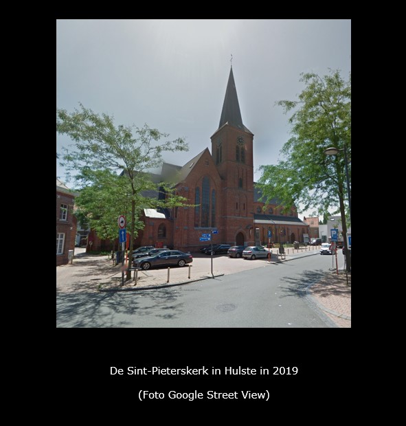 De huidige kerk is gelegen in het midden van het dorpsplein (zogenaamd Hulstedorp) en werd in een neogotische stijl gebouwd tussen 1904 en 1906.