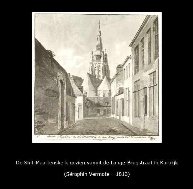Op verschillende tekeningen die Séraphin Vermote in Kortrijk (provincie West-Vlaanderen) maakte, prijkt de Sint-Maartenskerk. Het is één van de weinige kerken waarvan hij ook een binnenzicht tekende.