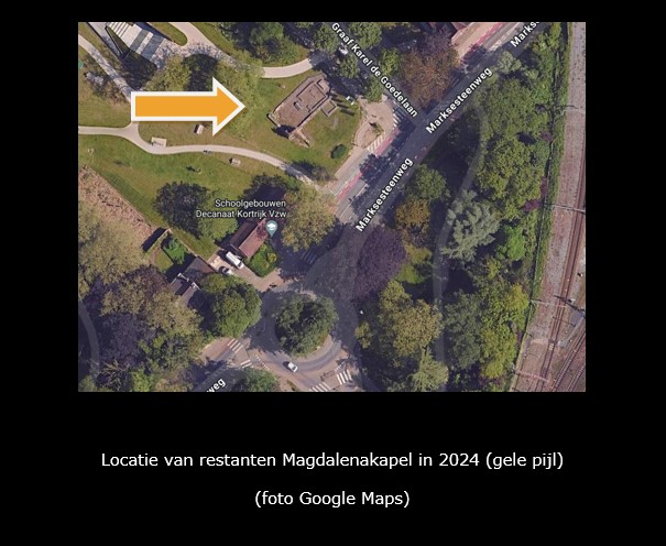 De tekening van Séraphin Vermote toont ons de Magdalenakapel in Kortrijk anno 1813. In het onderschrift bij de tekening maakt Séraphin ook gewag van een kerkhof.