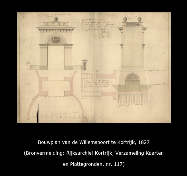 In 1827 werd de oude Meensepoort in Kortrijk afgebroken en vervangen door een majestueuze sierpoort, die pas was voltooid in 1831.