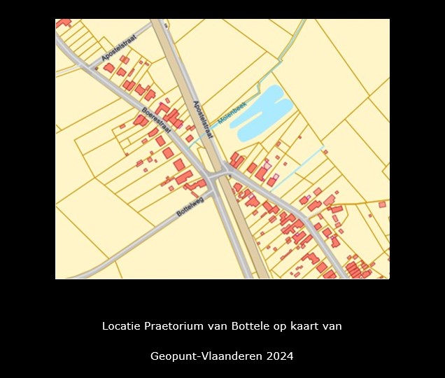 Het “Praetorium van Bottele” wordt hier afgebeeld als een omgracht kasteel met neerhof en aanhorigheden. Na de verkoop van het kasteel in 1789 en de verdeling van het goed werd het kasteel gesloopt. Ter hoogte van de Boerestraat werden in de 20