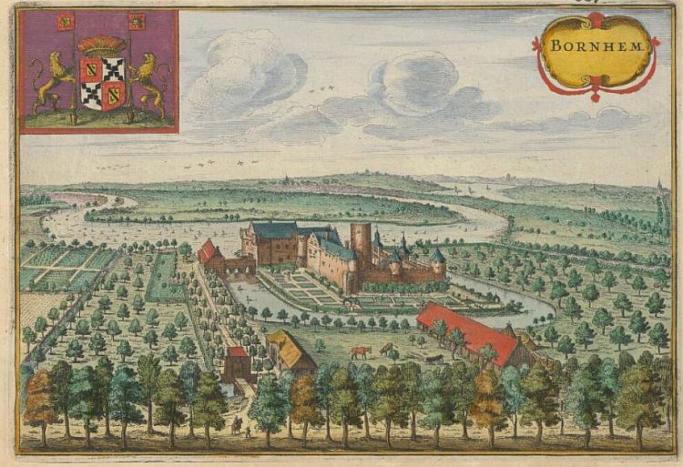 Op deze prent van Sanderus van omstreeks 1640 is het Kasteel van Bornem te zien.