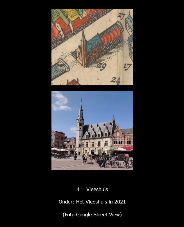 werd gebouwd tussen 1460 en 1462 op dezelfde plaats van een vroeger gebouw (uit 1293). Op de gelijkvloerse verdieping bevond zich de hal voor de lokale slagers. Het Vleeshuis werd gebruikt als vlees- en lakenhal, schepenhuis, vierschaar, gevangenis, gildekamer, rederijkerskamer, toneelzaal en wachtlokaal.