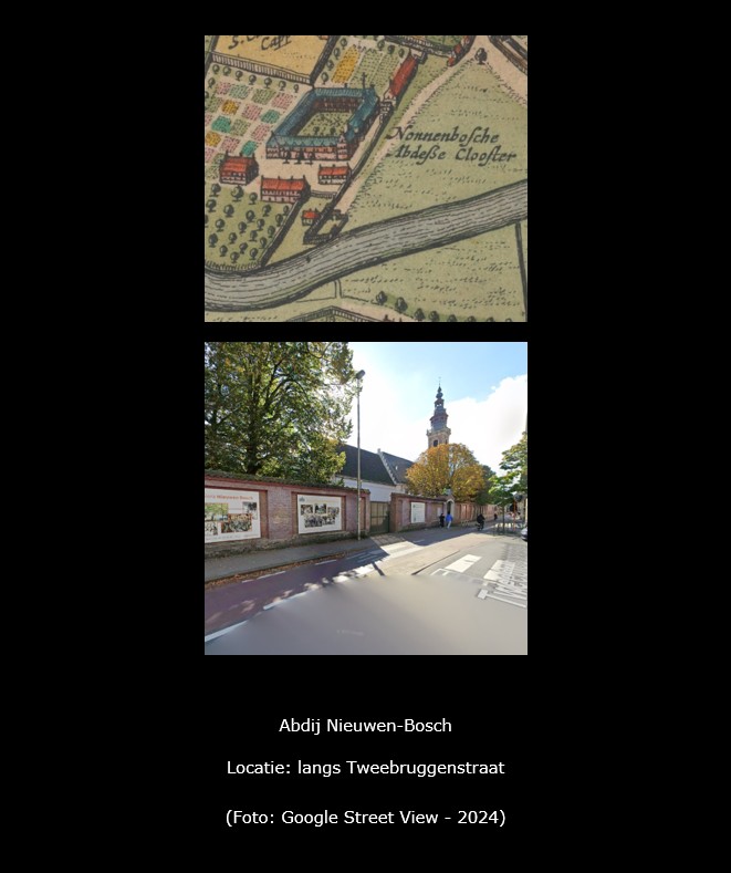 Op het stadspanorama van Sanderus is ook de voormalige cisterciënzerinnenabdij "Nieuwen-Bosch" te zien. Heden is dit het klooster en Instituut van de zusters van Onze-Lieve-Vrouw van Namen, gelegen langs de Tweebruggenstraat in Gent.