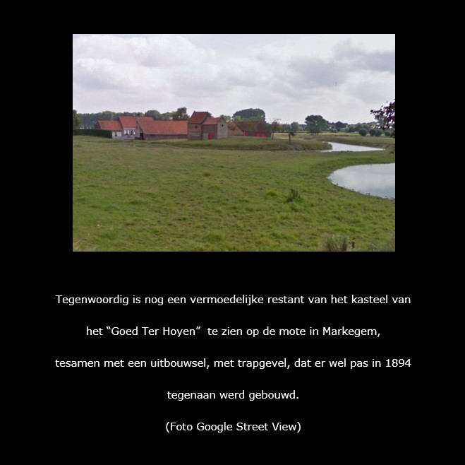 Het neerhof, de omwalde hoeve Goed Ter Hoyen bestaat nog en is gelegen langs de huidige Tieltstraat in Markegem.