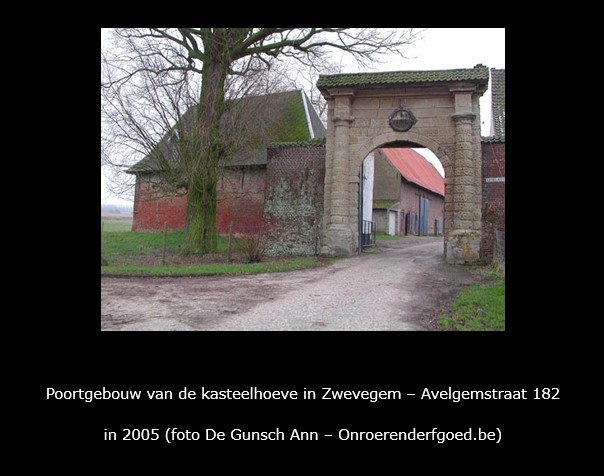 Op Avelgemstraat 182 bevindt zich de Kasteelhoeve, die al in 1502 werd vermeld. Het erf wordt betreden via een poortgebouw dat in renaissancestijl werd opgetrokken en waarschijnlijk ook op deze prent van Sanderus te zien is.